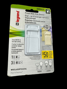 Legrand Pass & Seymour 450W Preset Wide Slide Dimmer WSCL453PTCCCV4 Color Kit