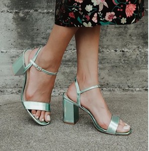 LULUS 7 Arya Green Metallic High Heel Sandals Chunky Block Strappy Fairy NEW