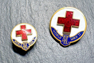 MATCHING WWII ERA ARC AMERICAN RED CROSS ENAMEL PIN & BUTTONHOLE EMBLEM H609