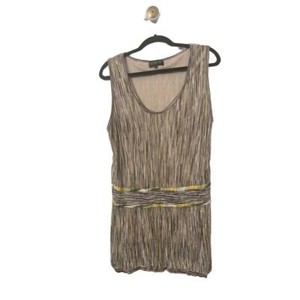 Nina Leonard Dress Womens Size 2X Gold Metallic Knit Scoop Neck Waist Tie