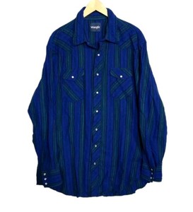 Wrangler Flannel Shirt Pearl Snaps Men's Size 2XLT Blue Green Striped Cotton