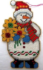 Snowman Ornament Hand Stitched Cross Stitch 5" Tall Beautiful Grandma Core