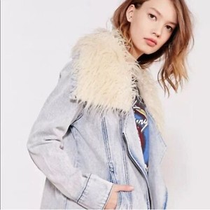 Somedays Lovin Acid Wash Faux Fur Patchwork Asymmetric Zip Closure & Pockets S