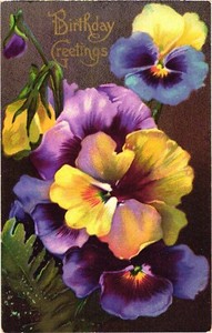 Birthday Greetings Purple and Yellow Flowers Greetings Vintage Postcard