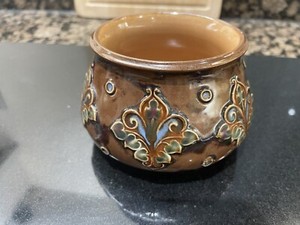 Art Nouveau Doulton Lambeth Stoneware Bowl Max 10cm Dia c1895