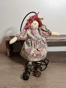 Hand Crafted 10” Raggedy Ann Doll Christmas Ornament Or Sitting Doll. Buttons