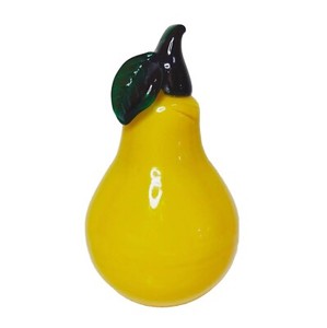 Hand Blown Art Glass Pear Fruit Bright Yellow Green 6"