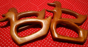 Vintage Set Wood Grain Glossy Duck 4) Napkin Rings Farmhouse Kitchen Decor 258