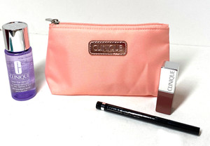 Clinique Mini Pink Makeup Bag W/ Samples Take Day off Liquid Liner Blush Pop