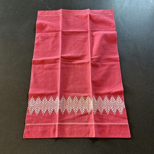 Vintage Kitchen Hand Towel Salmon Pink White Embroidery Edged Retro