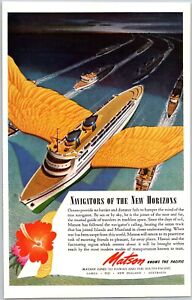 PRINT AD 1944 Matson Lines to Hawaii Navigators of New Horizons Winged Ship 6x9