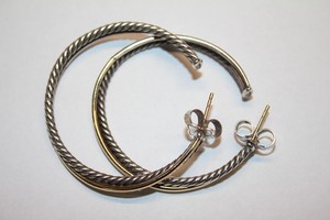 David Yurman 925 & 18k Gold XL Crossover Cable Hoop Earrings 1.75"