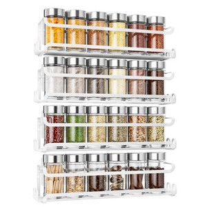 4 Pack Wall Mounted Spice Rack with 16 Hooks, Spice Rack Organizer for Cabine...