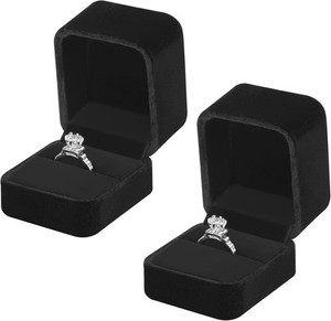 2 Pieces Velvet Ring Gift Box, Small Storage Boxes for Proposal Black