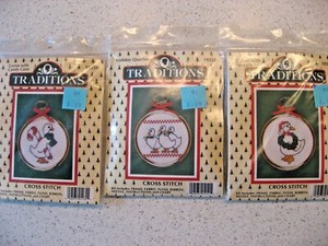 Vntage Lot of 3 Traditions Cross Stitch Christmas Ornament Kits - Duck & Goose
