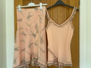 Max Studio 100% Silk 2 Piece Peach Top (M) and Floaty Skirt (XS) Summer Wedding