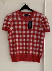POLO Ralph Lauren Womens Knit White+Red Checkered Cotton+Linen Top BNWT RRP£159