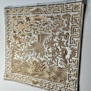 Silk Chinese Embroidery Placemat Dragon Gold White Beige Pattern 10”x6”