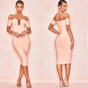 🆕HOUSE OF CB Celia Peach Wire Bandage Dress SZ XS