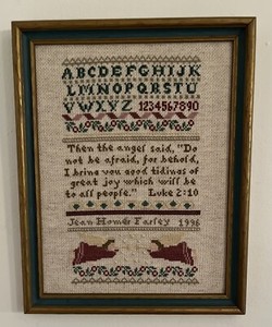 This is just the most precious cross stitch piece! I love it! It's glass-frame was packed with the utmost of care and shipping was quick. Communication, description and value were great. So happy to do business with this seller again and again!! Thank you! 5-Star Seller⭐⭐⭐⭐⭐