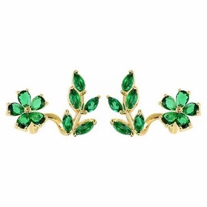 Brilliant Gold Faux Emerald Flower Ear Cuffs Hooks Pierced Earrings Pair