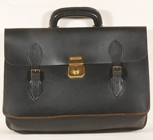 Vintage black all leather briefcase laptop case folio satchel Cheney lock VGC