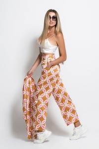 Zara Orange Pink Printed Pyjama Style Trousers Pants Palazzo Bloggers Size XS