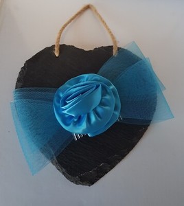Netted Double Bow Fascinator with Satin Flower Centre Blue with Hair Comb