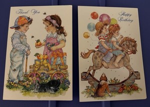 Vintage Lot Of 2 Unused Birthday Greeting Cards Bonnets & Blessings 1996