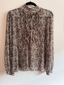 Zara Paisley Print Blouse Shirt Chiffon Top Size S Multicoloured Long Sleeve
