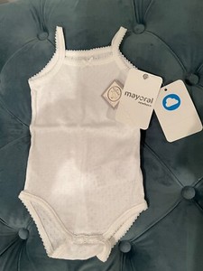 NEW Mayoral Newborn White Diamond Sleeveless Tank Top Bodysuit Sz 4-6 Months NWT