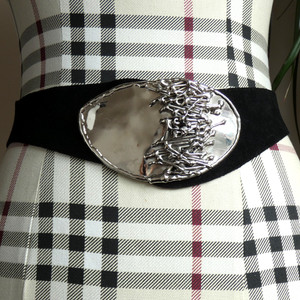 South African Real Suede Black Belt Chunky Textured Silver Tone Buckle Cincher