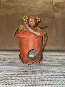 Pumpkin Wooden Candle Holder Farmhouse Rustic 7”x6”x5”w/candle