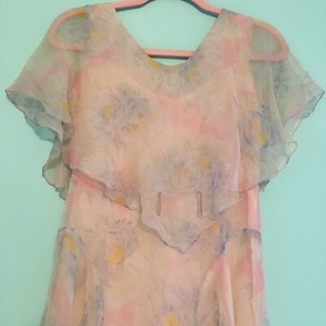 1920s Deco Vintage Silk Chiffon Pastel Pink Floral Fairy Dress XS