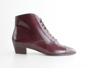 sz 10 Vtg 80s Aubergine Leather Lace Up Almond Toe Ankle Boots Burgundy Oxfords