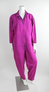 Vtg 80s Rare Fucshia ACID WASH Denim Jean Jumpsuit Cotton Made in USA New Wave L