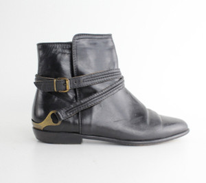 Vtg Joan & David Black Leather Western Gored Pull Up Ankle Boots Shoes Italy 37