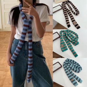 Cotton Decorative Neckerchief Black Grey Stripe Thin Scarf Fashion Streetwear